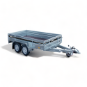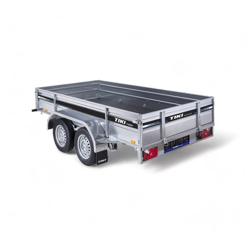 Proffserie boggie varehenger med 40 cm karm, parabolsk bladfjær og brems fra Tiki, helsveiset rammekonstruksjon. Skrutipp inkludert. (Vises ikke på illustrasjonsbildet men er inkludert!)