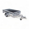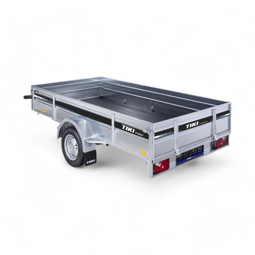 Romslig, rimelig proffserie varehenger fra Tiki, helsveiset rammekonstruksjon, bladfjærer og 40 cm forsterket karm! Robust og romslig proffserie varehenger med mulighet for tipping av kassen ved å løsne to klemmer foran planet mot V-draget.