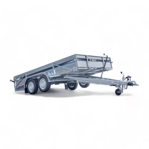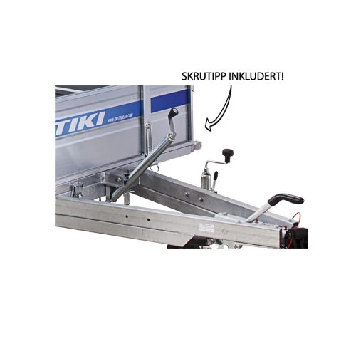 Toakslet, stor, robust og romslig nyhet fra Tiki, - med flere detaljer våre kunder virkelig setter pris på. Romslig lasteflate med planbredde på hele 185 cm og planlengde på 361 cm. Karmhøyde på hele 40 cm som standard gir plass til stort volum. Forlem, baklem og sidekarmer er dessuten utstyrt med kraftige avstivere både horisontalt og på skrå(!), - noe som gjør karmene ekstra solide. Foran og bak skjermene er det montert stigtrinn for enkel tilgang til planet. Planet kan enkelt tippes, hengeren er utstyrt med praktisk tippskrue slik at du enkelt kan vinkle planet og kjøre opp maskiner og utstyr!