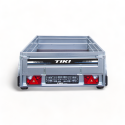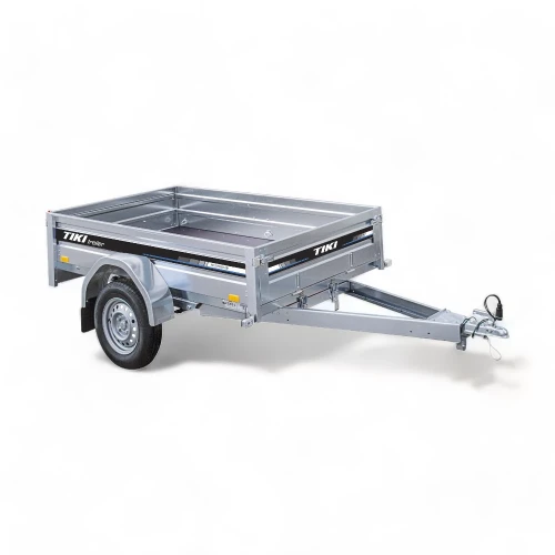 Standardserie varehenger fra Tiki med bladfjærer som motvirker slag og støt! Mulighet for tipping av kassen ved å løsne to klemmer. Hengeren er laget av stål fra Finland og utstyrt med Tyske Knott akslinger, vannavvisende hjullagre og finskprodusert HDG galvanisering for nordiske forhold. Lyktene og det elektriske systemet er fra den Østerrikske produsenten Aspöck. Hengerbunn i laminert finsk kryssfiner med anti-skli overflate. Avtagbare for- og baklemmer og stålskjermer med skvettlapper.