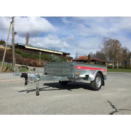 Standardserie varehenger fra Tiki med tillatt totalvekt på 1000 kg. og nyttelast på 793 kg. Utstyrt med brems for optimal sikkerhet. Robust, romslig og rimelig tilhenger med mulighet for tipping av kassen ved å løsne to klemmer foran planet mot V-draget. Denne varehengeren er blant våre mest solgte! Hengeren er praktisk utformet med kasse som kan tippes og inneholder en rekke smarte løsninger for den som er på jakt etter en prisgunstig varehenger i god kvalitet. Hengeren kan også leveres med påmontert ekstrautstyr som + 30 eller +60 cm forhøyingskarmer, presenning, nettgrind, grindpresenning, flatt lokk (se varelisten) eller +45 cm plasttopp. Tilleggsutstyr kan otfe kombineres for å lage den optimale løsningen til ditt behov.