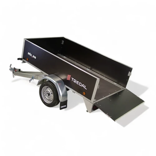 Lavbygget varehenger med tipp. Leveres med 50 cm høye karmer som standard. Ypperlig til fritidsbruk, som ATV tilhenger eller tilhenger for små maskiner og utstyr. Hengeren har 6 stk. nedfellte, fjærbelastede surreringer i stålstriper i hengerbunnen.