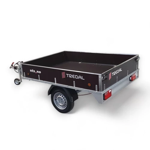 Karmer og bunnplate i finèr; Tredals varehengere har robuste karmer og bunnplate av vannfast høykvalitets finèr. Finerkarmer er mer tøyelig enn stål- / alukarmer og tåler støt og slag uten å bulke. Finèr er svært holdbart, har dempende effekt og skrangler ikke(!) Solid bygget: Tredals varehengere tåler tøff behandling.rammekonstruksjonen er meget solid utført. Både private og profesjonelle har glede av hengerne i årevis. Vi på NTS erfarer at mange tilhengerkunder bytter merke mellom hvert tilhengerkjøp, - Tredal kundene er imidlertid meget trofaste. De vil ikke ha noe annet. En Tredal henger liger rolig bak bilen både fullastet og tom. Mange tilhengerprodusenter sparer inn på detaljene for å holde lave priser, på bekostning av kvaliteten. Tredal har kvalitetsdetaljer i alle ledd. Nærhet til Norsk fabrikk: Tredals tilhengere er norskproduserte. Nærheten til norsk fabrikk sikrer effektiv levering av deler på modeller helt tilbake til 50- tallet!