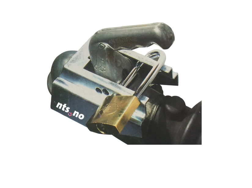 2. Sikre ved å tre inn låsen i ett av hullene, - så nært koplingshåndtaket du kommer.