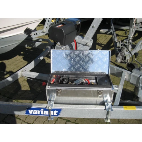 Batterikasse med bryter. Smart om du eksemepelvi skal kople opp el-vinsj på båthenger.