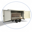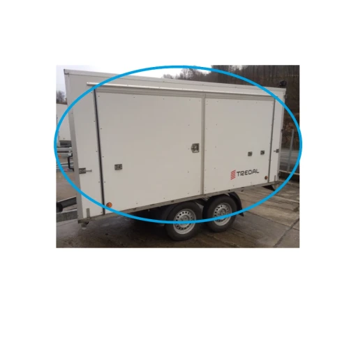 Sidehengslete sidedører skaphenger VENSTRE sett bakfra montert på NY Tredal henger