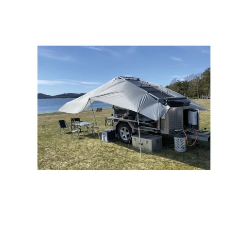 Tredal Camping telt "fortelt" med 6 stenger til lokkhengere.e. Her vist på offroad versjon av denne hengeren med mye ekstrautstyr. Montering er ikke inkludert.