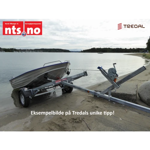 Denne båthengeren er utstyrt med Tredals spesialkonstruerte tippfunksjon. Ved å løsne en sikkerhetsmekanisme kan du enkelt tippe hele bakrammen over akslingen. Dette gir eksepsjonelt god vinkel ved sjøsetting og opptrekk av båten. Se eksempel i bilderullen. (Bildet viser modell med brems.) Baklyktene er montert på en brakett som enkelt kan løsnes og svinges til siden i en håndvending, du slipper altså å knote med demontering og løse lyktedeler. Sjøsetting og opptrekk skjer effektivt!