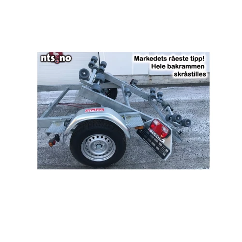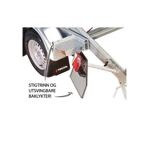 Denne båthengeren er utstyrt med Tredals spesialkonstruerte tippfunksjon. Ved å løsne en sikkerhetsmekanisme kan du enkelt tippe hele bakrammen over akslingen. Dette gir eksepsjonelt god vinkel ved sjøsetting og opptrekk av båten. Se eksempel i bilderullen. Baklyktene er montert på en brakett som enkelt kan løsnes og svinges til siden i en håndvending, du slipper altså å knote med demontering og løse lyktedeler. Sjøsetting og opptrekk skjer effektivt!