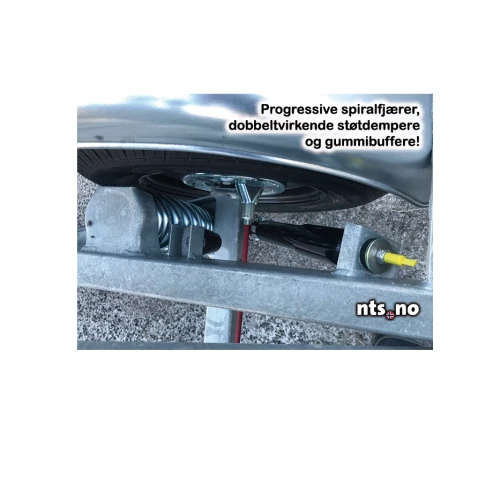 Utstyrt med SPIRAX! Spesialkonstruert fjæringssystem; Tilhengerne fra Tredal har progressive spiralfjæringer, dobbeltvirkende støtdempere og gummibuffere på alle hjul. Dette gjør at Tredal tilhengere stiller i en klasse for seg når det gjelder kjørekomfort, kjøreegenskaper og holdbarhet. SPIRAX bygger på samme prinsipp som de fleste biler har i dag. Derfor har en TREDAL henger tilnærmet samme kjøreegenskaper som bilen din. Det gir behagelig og sikker transport også på dårlige veier.