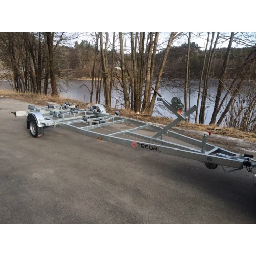 Tredal 22-1800 er vår største enakslede båthenger fra Tredal. En kraftig båthenger for båter opp til ca 22 fot og vekt opp til 1360 kg. Bredde på hele 230 cm og de lavprofildekk på 195/50 R 13 gir lavt tyngdepunkt og optimaliserer balansen. Konstruksjonen med buet drag fra front til bakpart gjør hengeren stabil og solid. Tredal har markedets råeste tippløsning med tipping av hele firkantrammen bak. Senterruller og doble bakre sidestøtter vippes bakover sammen med firkantrammen. Lyktene trenger du ikke koble fra; løses enkelt ut og vippes til siden. Sjøsetting, opptak og transport utføres effektivt og trygt i en håndvending. Progressive spiralfjæringer, dobbeltvirkende støtdempere og gummibuffere sikrer eksepsjonell kjørekomfort med minimal ytre påvirkning. Justerbar baugstøtte med vinsj. oppgraderte lykter, superruller og meget lav innlastingshøyde.