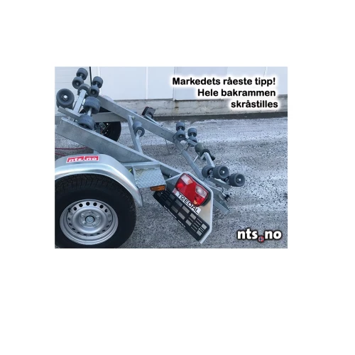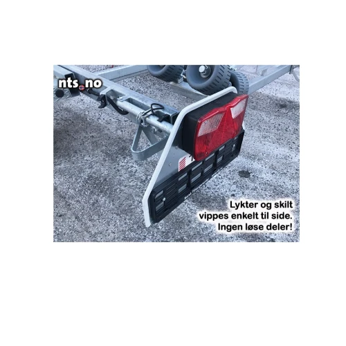 Denne båthengeren er utstyrt med Tredals spesialkonstruerte tippfunksjon. Ved å løsne en sikkerhetsmekanisme kan du enkelt tippe hele bakrammen. Dette gir eksepsjonelt god vinkel ved sjøsetting og opptrekk av båten. Både sentervuggen og bakre vugge følger med når du tipper rammen. Se eksempel i bilderullen. Baklyktene er montert på en brakett som enkelt kan løsnes og svinges til siden i en håndvending, du slipper altså å knote med demontering og løse lyktedeler. Sjøsetting og opptrekk skjer effektivt!