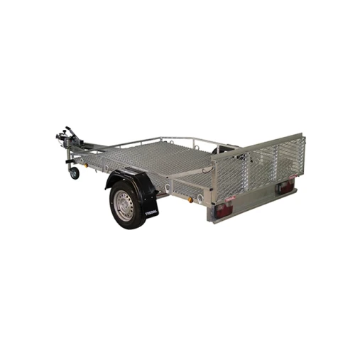Praktisk liten enakslet maskinhenger med brems fra Tredal tilhengerfabrikk. Praktisk til transport av mindre kjøretøy som gressklippere og lignende. Tippbart plan og påkjøringslem bak. Rikelig med festepunkter, her er det både påsveisede surreøyer og reling.