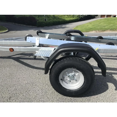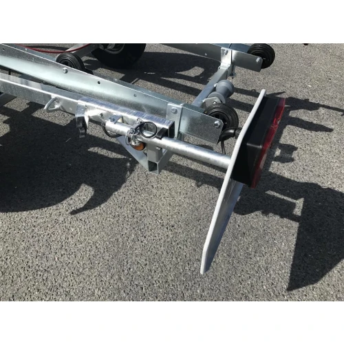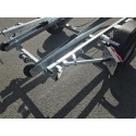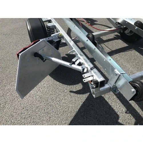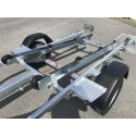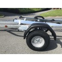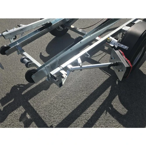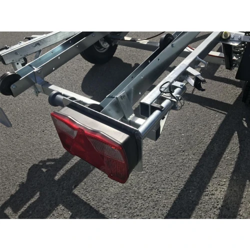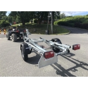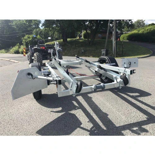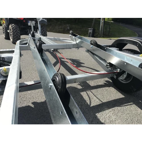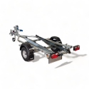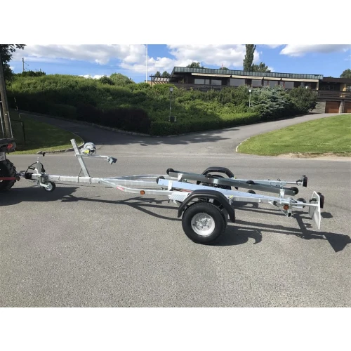 Tredal vannscooterhenger med brems. Hengeren har skinner med ruller for enkel sjøsettting og opphaling av vannscooter på en meget skånsom måte. Tredals SPIRAX system med progressiv spiralfjæring, dobbeltvirkende støtdempere og gummibuffere sikrer samtidig eksepsjonell kjørekomfort med minimal ytre påvirkning. Brems gir lovlig 80 km/t selv med aktuell vekt over 300 kg.